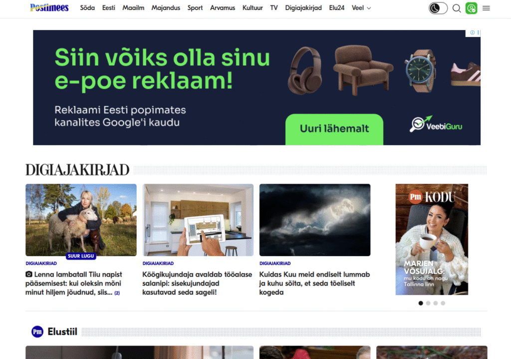 Kui nägid meie Google Ads reklaami Delfis, Postimehes, YouTube’is, Gmailis või mõnes teises portaalis, siis just selline võiks olla ka sinu ettevõtte reklaam läbi Google Adsi. Kujuta ette, et sinu e-poe või teenuse reklaam jõuab täpselt sama nähtavale kohale, ja seda Eestis kõige enam kasutatud platvormidel.